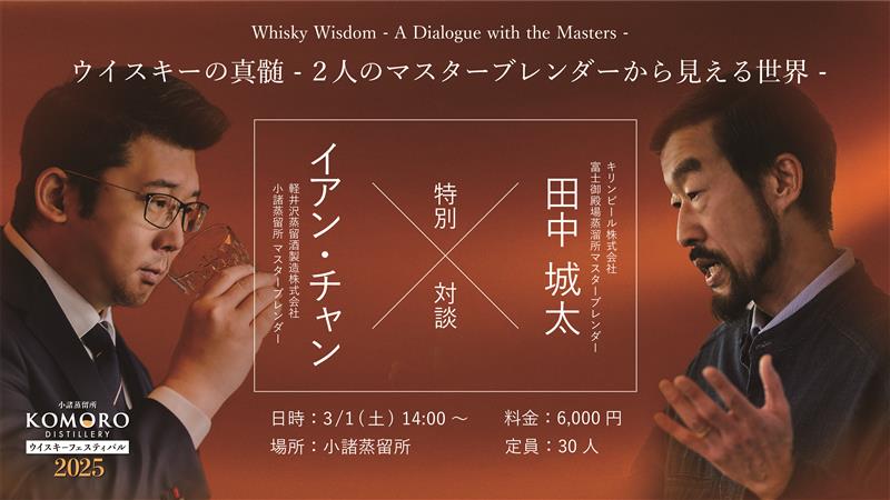 注目は、キリンビール富士御殿場蒸溜所の田中城太氏と、小諸蒸留所のイアン・チャン氏、2人のマスターブレンダーによる夢の対談です。 両蒸溜所のウイスキーを試飲しながら、ウイスキー造りの哲学や情熱を語り合う、貴重な機会となるでしょう。 ウイスキーファンならば、ぜひとも参加したい企画です。(事前予約制)